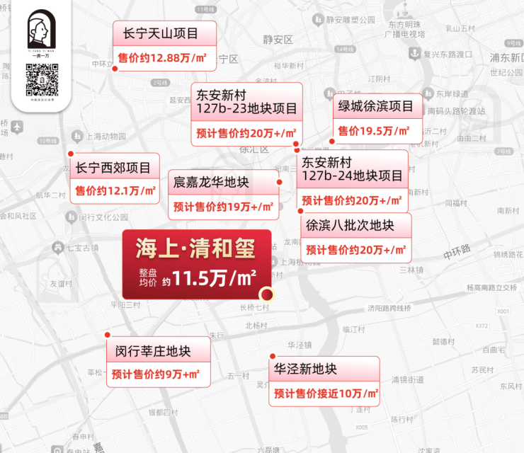 相比之下,目前徐汇唯一在售新盘海上·清和玺显得更香了!整盘均价约11.5万/㎡!