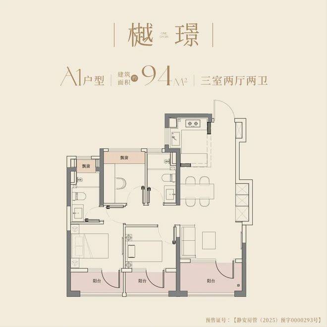 94㎡三房两卫:三阳台 + 全景飘窗,最高可拓展约 19㎡