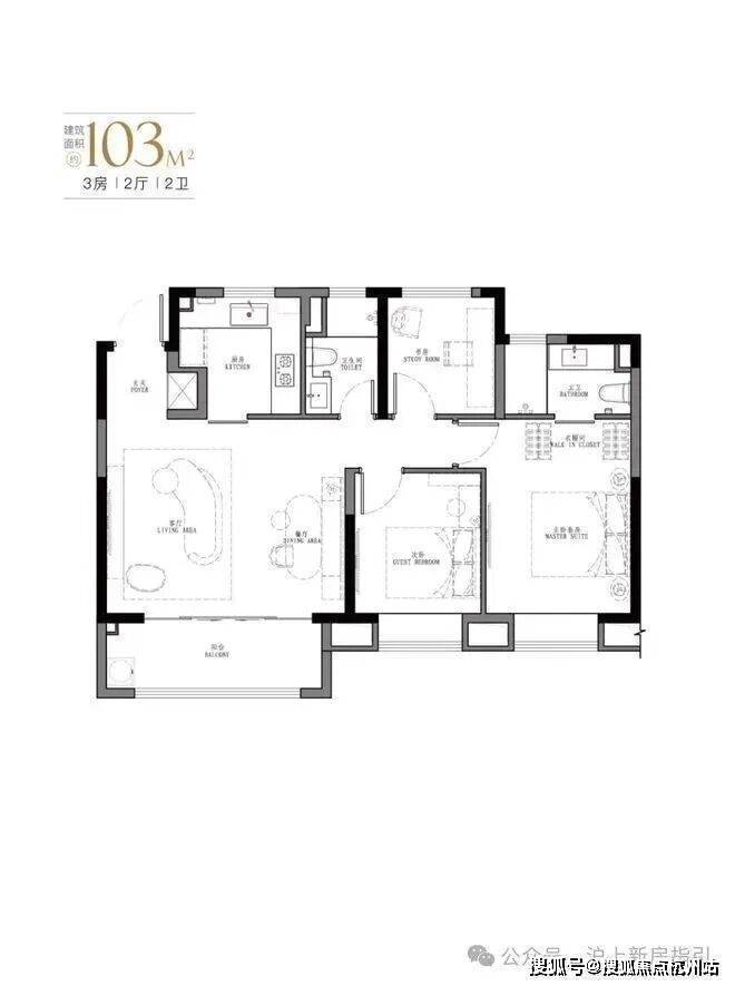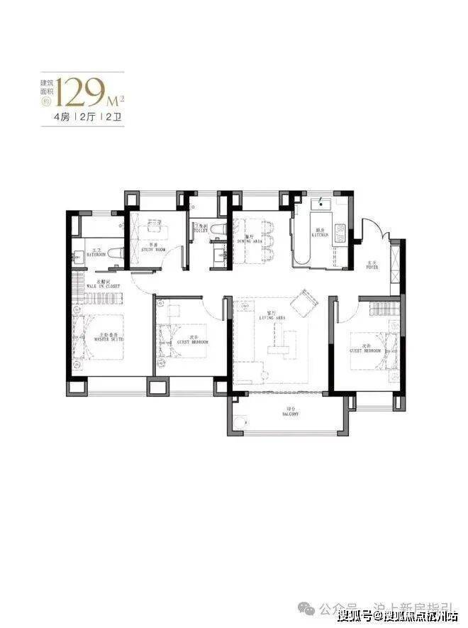 产品: 103㎡、107㎡的三房两厅两卫及123㎡、129㎡的四房两厅两卫。