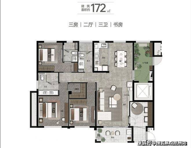建面约160㎡ 4房2厅2卫▼前瞻全能户型,客餐厨一体,解锁未来生活更多可能