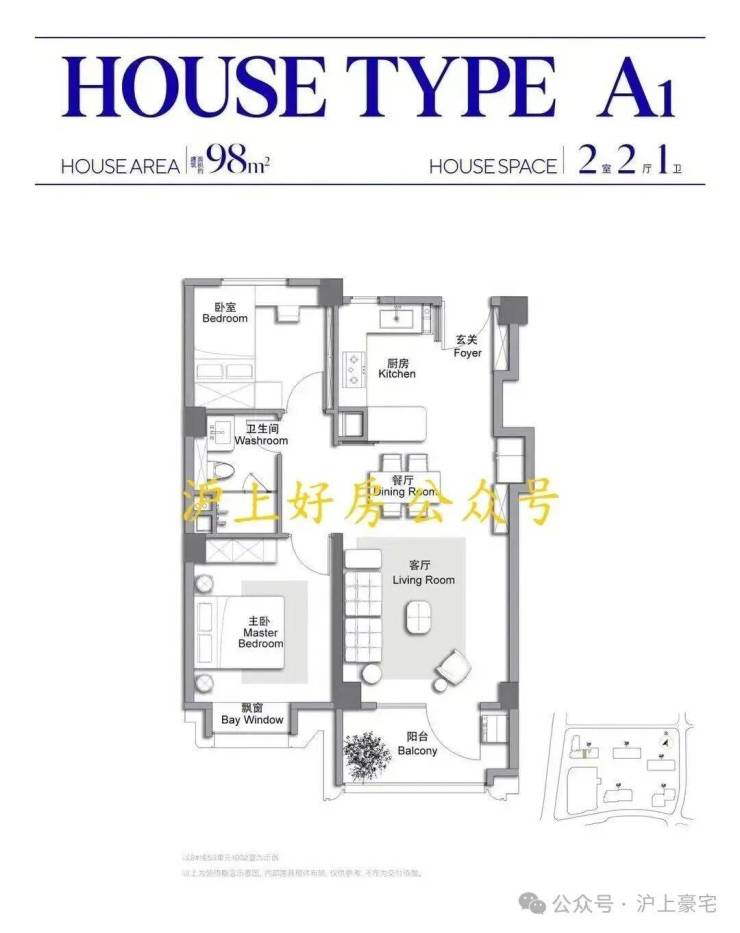 建面约98㎡2房户型▼