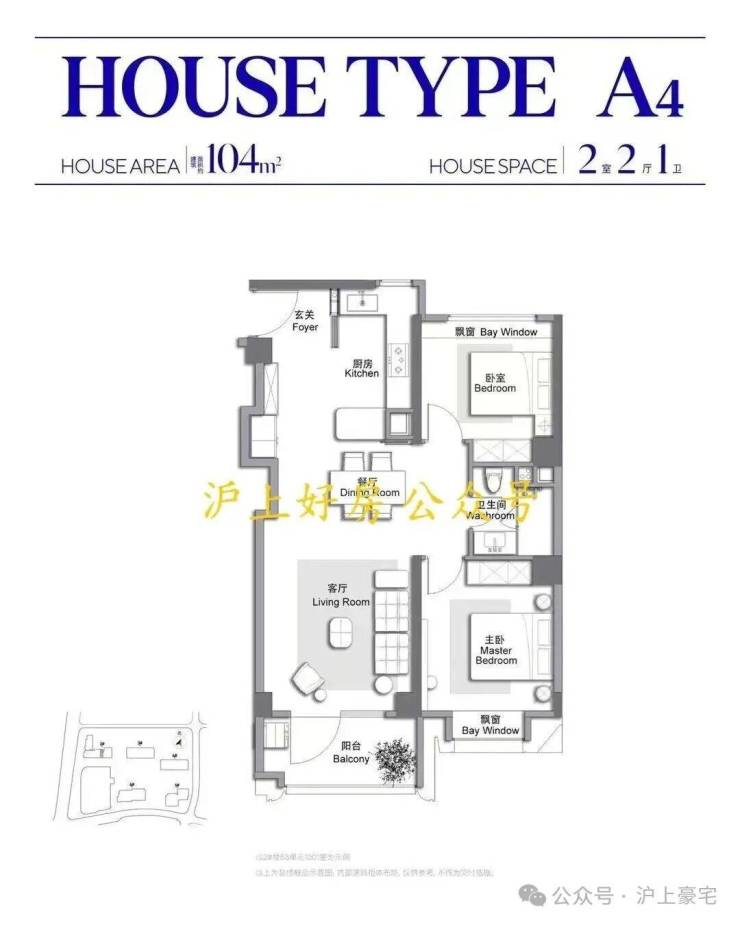建面约104㎡2房户型▼