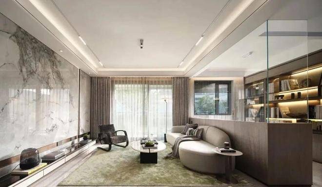 电视背景墙选用带有东方意蕴的万里河山石材,颜值超高!