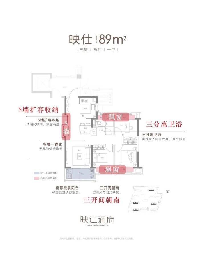 先看来这个性价比爆棚的建面约89㎡3房户型: