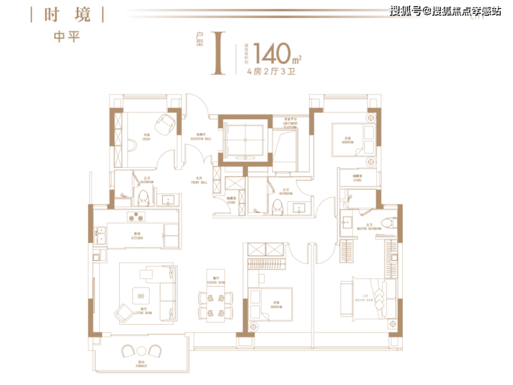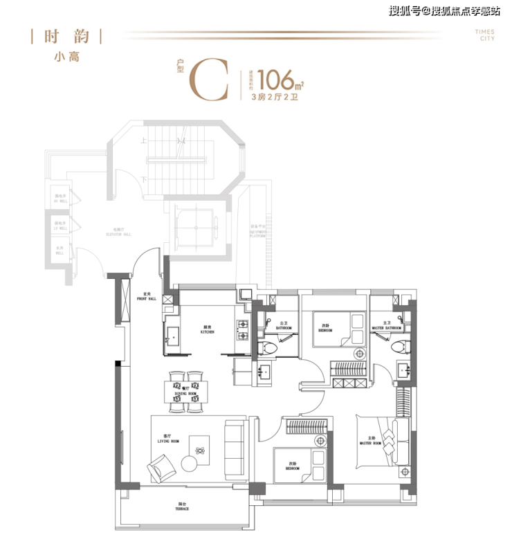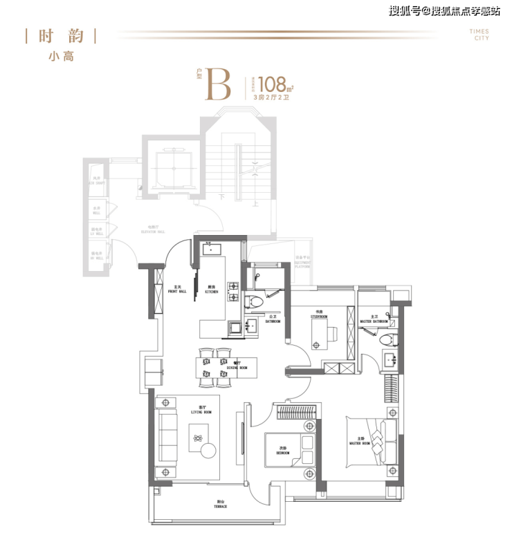 建面约108㎡3房(小高)实用且更有温度的“家庭生活中心”