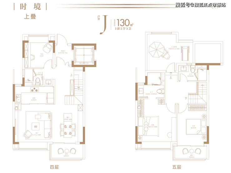 建面约130㎡-170 ㎡叠墅产品南北入户、专属电梯厅、超级横厅、超强收纳