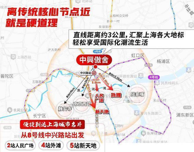 从8号线中兴路站出发,2站人民广场、4站外滩、5站新天地,通勤效率超高。