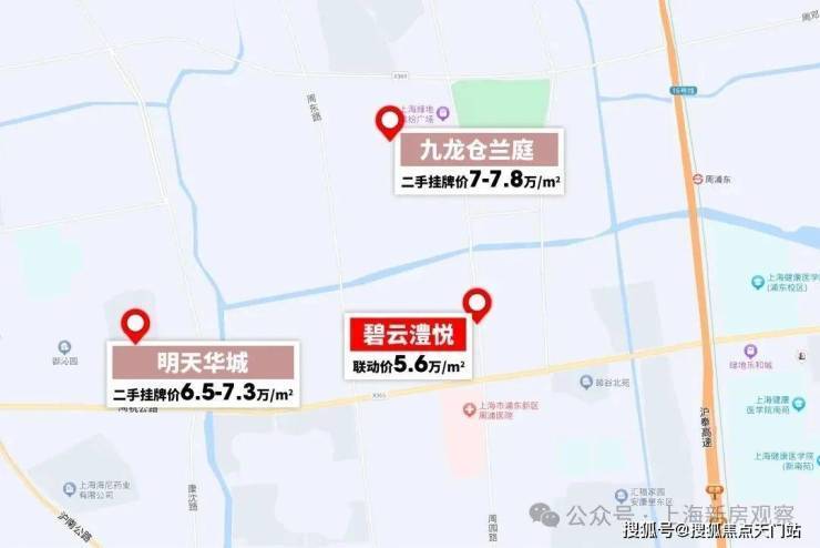 周浦联动价早就6万+,品质二手房更是6万+,5.6万/㎡的碧云澧悦性价比错过难寻! 周浦品质二手房九龙仓兰庭目前挂牌价 约7-7.8万/㎡; 明天华城二手挂牌约 6.5-7.3万/㎡ ,项目性价比无需多言。