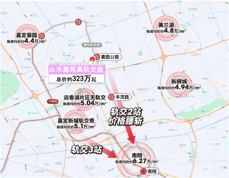 众禾嘉苑:一批次总价约323万起,距离南翔站仅2站。
