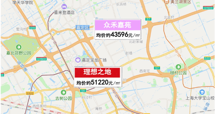 从人民广场为中心,直线距离约20公里,所覆盖的环线区域有南翔、徐泾、唐镇、川沙等板块的新房价格约600-700万之间。而从地图直线距离来看,众禾嘉苑不仅距离市中心更近,且总价仅323万起,其价格洼地的优势已显而易见!