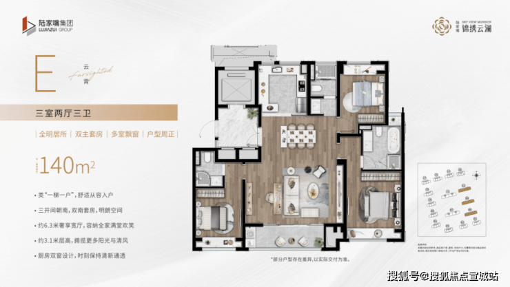 目前陆家嘴锦绣云澜正在热销中,其精心设计的建面约98㎡3房、约140㎡4房以及168㎡4房户型,备受好评。目前剩余140㎡4房在售!