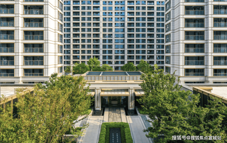 入口中轴对称式的前厅水景,两侧阵列由榉树围合组成,不仅拥有“门前中举”的美好寓意,也让入口的仪式感拉满,与灵动的喷泉水景交相辉映,形成具有东方礼序的归家体验。