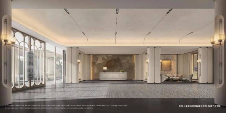 酒店式礼品⼤堂,以星级酒店审美融合非遗技艺,辅以奢石用料,这就是豪宅业主才能享受到的生活