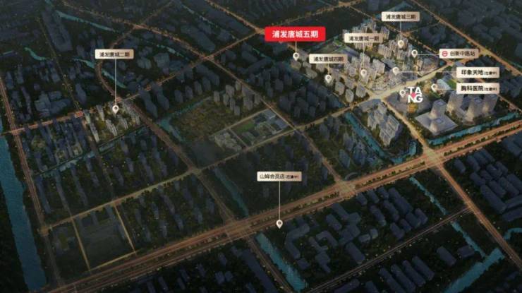 浦发唐城五期的位置不错,属于创新中路TOD组团的核心位置,直线距离2号线创新中路站仅约300米。