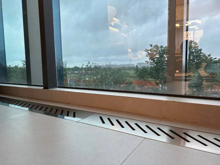 另外,上海梅雨台风季节较多,所以浦发东望设置了阳台排水槽,即使未来业主选择不封阳台,这个设计能把雨水迅速排出,避免积水也避免室内受潮湿影响。