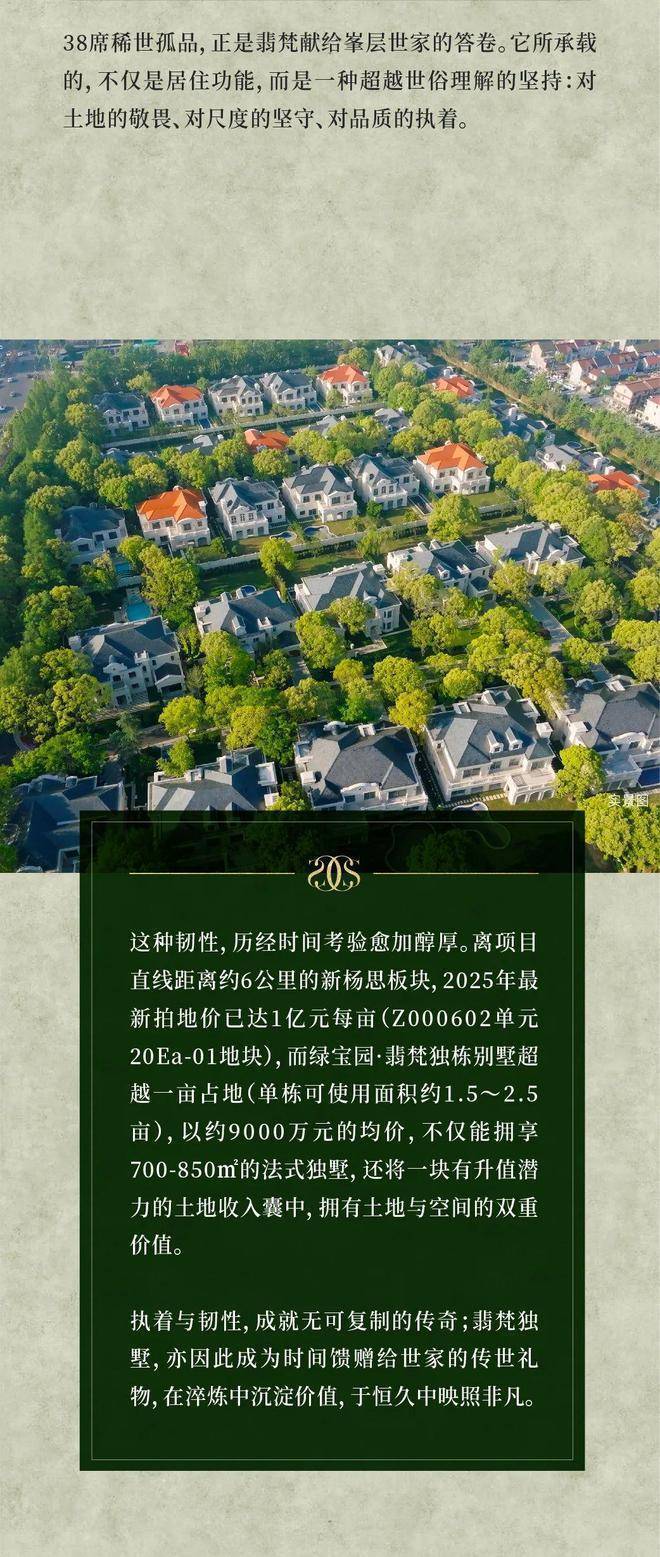 换句话说,如今要在上海城央买建面约700㎡的独栋别墅产品,新房层面能够买到的,只有绿宝园·翡梵一盘而已。