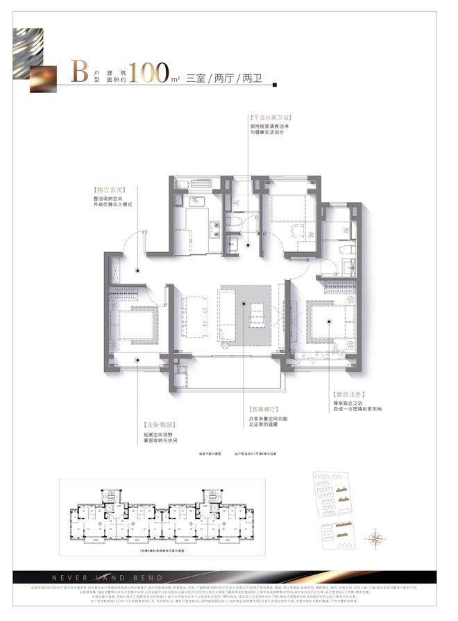 ♂️招商云澜湾售楼处电话:400-8787-740✅✅而 建面约100㎡的三房两厅两卫户型,可以说是约96㎡3房的升级版,空间更加延展,整体 横厅面宽约5.2米(轴中距),♂️招商云澜湾售楼处电话:400-8787-740✅✅形成更大的南向采光面,且搭配南向观景阳台,直接做到了 3.5面宽朝南,这在同类产品中是比较少见的。