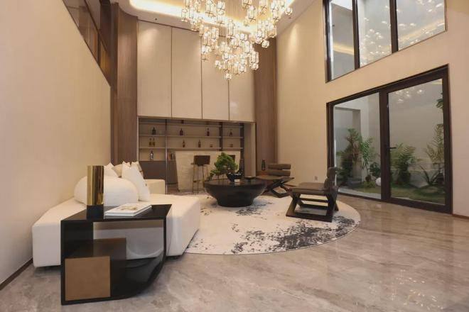 泰禾海上院子售楼处电话: 400-8787-740通过优化后的“L型”空间排布,实现了三面有园林环绕,前庭空间尺度非常大,一进门就是约10.2米的大横厅,气派十足,采光也做到极致,日常起居极为从容舒适。