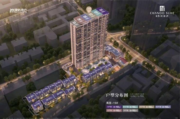 『象屿苏河琹庐』地处内环静安苏河湾畔,四至范围, 东至:会文路; 西至:规划283-20地块,旁边是虬江大楼; 南至:王家宅路 ;北至:虬江路。小区容积率2.67,车位比例1:1.2,人车分流;高层就1幢26层高建筑,132套房源,风貌别墅16幢。
