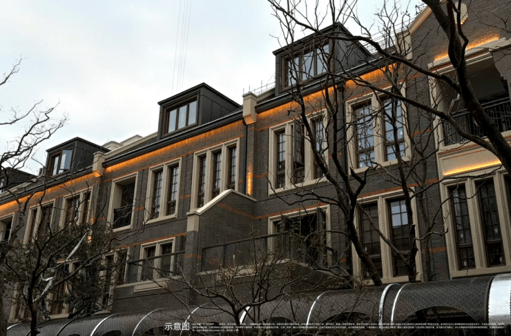 风貌别墅延续了上海石库门风格。青砖黛瓦,红色腰线,南向面宽最大的大概约15米左右。从一扇门、一扇窗中保留和创新,同时区别“里弄式”别墅的小格局、少采光、多浪费;空间布局灵活,满足不同高阶家庭生活需求,递呈出静安苏河畔难得的海派浓荫别墅。