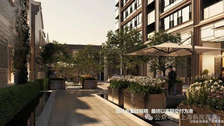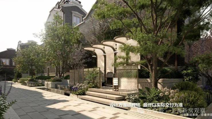 特别设计了八大映象典藏场景景观节点,有百年梧桐下的静谧巷道串联各景观节点,还有充满文化积淀的海派艺术庭院等,营造出精致、典雅的高阶生活氛围。