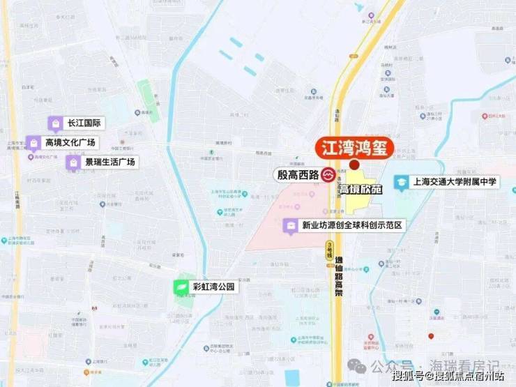 回到江湾鸿玺,项目位于殷高路逸仙路路口,其实就是很多人说的高境欣苑二期,在高境欣苑中又开发了一栋楼。