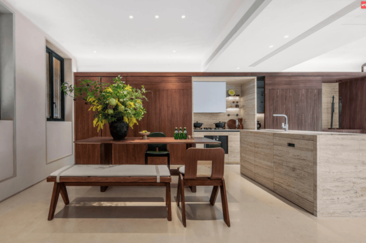 一楼采用LDK通厅设计,直面街区景致,保留了与烟火气的亲近感,临街空间可以是花艺工作室、精品买手店或小而美的咖啡店,日常下楼采购后也能直接归家;对于有的业主更都能实现“工作+生活”的无缝融合,外面经营,转身就回家。