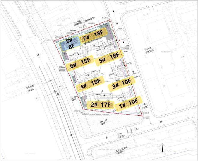 根据项目规划设计方案, 项目拟建7栋10-18F高层住宅、1栋8F保障性住房以及若干配套用房。 可售房源约388套,