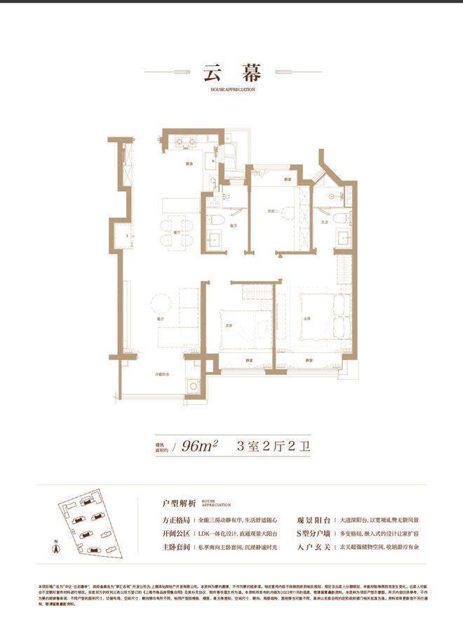 建面约96㎡3房,充分从居住者的角度考量生活动线、舒适度与生活感。 S型的分户墙,褪去呆板,为家具预留更多的空间; LDK一体化的设计打破空间局限,解锁更多的生活场景,也拉近家人间的距离;主卧套间自在独处,生活的优雅时刻尽显……