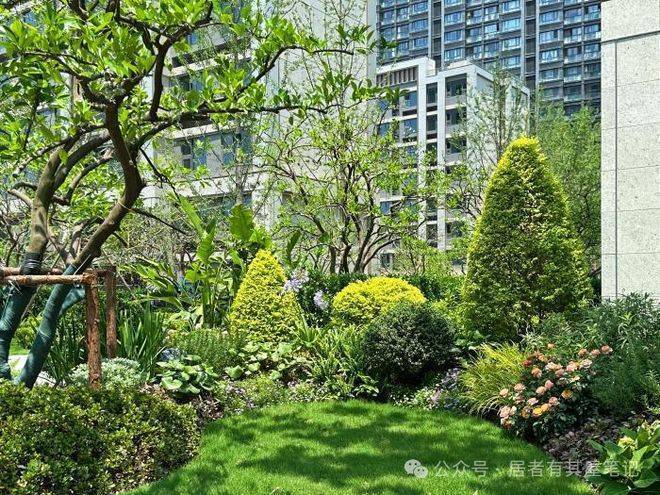 大乔木种植远离南侧窗户,结合草坪保证底层房源有良好视野和采光,同时通过地形设计与植物的有机结合保护业主私密性。