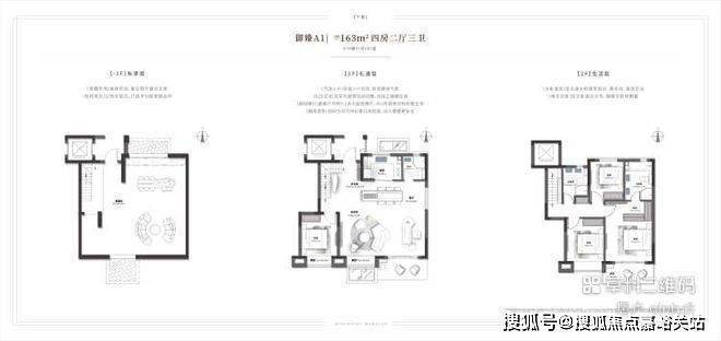 上叠:三层长辈房+奢阔一体化客餐厅,U型厨房空间;四层三房两卫布局,尊享主卧套房;北侧星空露台及顶层,美好生活自由定义.