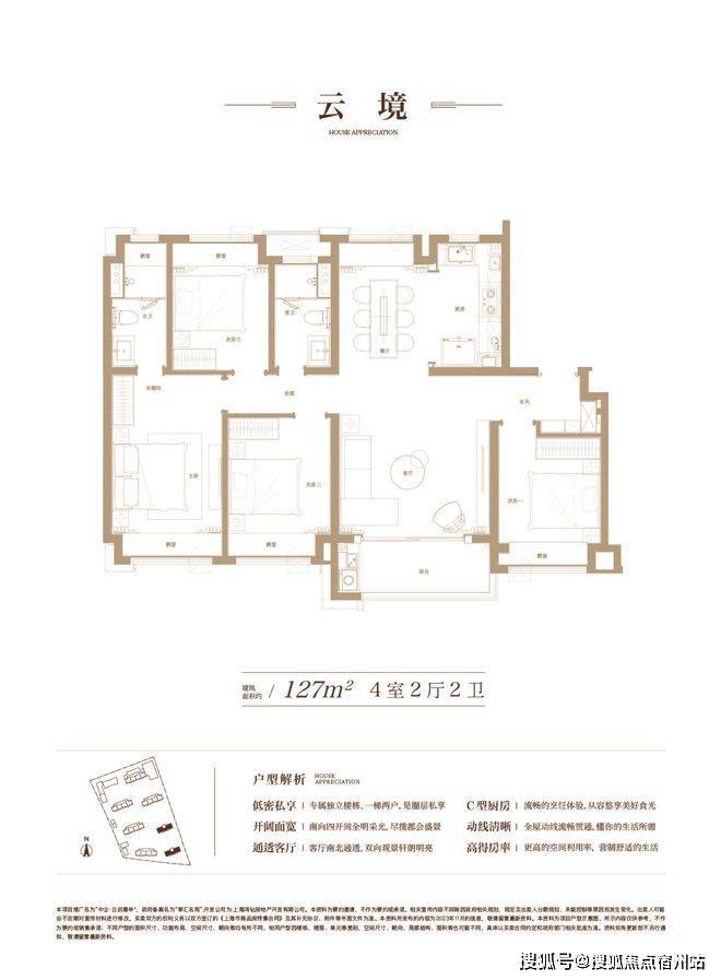 建筑约127㎡的「云境」空间内,四开间南向结合舒朗的方厅,大尺度的面宽让光赋予了生活更多的灵感。厨房U形台面,尽情挥洒味觉灵感,一体化的客餐厅创造更丰富的用餐、社交场景,从西式brunch到日式omakase,尽享味蕾的欢愉时光。 一梯两户的入户,搭配轩朗的玄关,让每一次归家,都更从容......