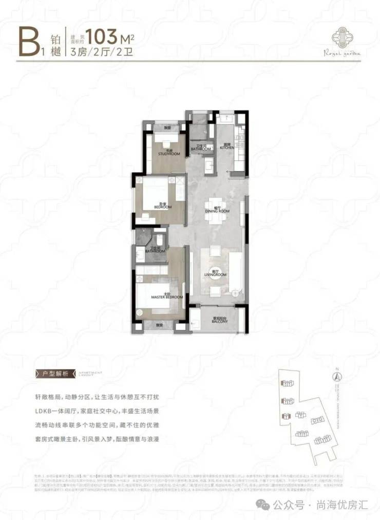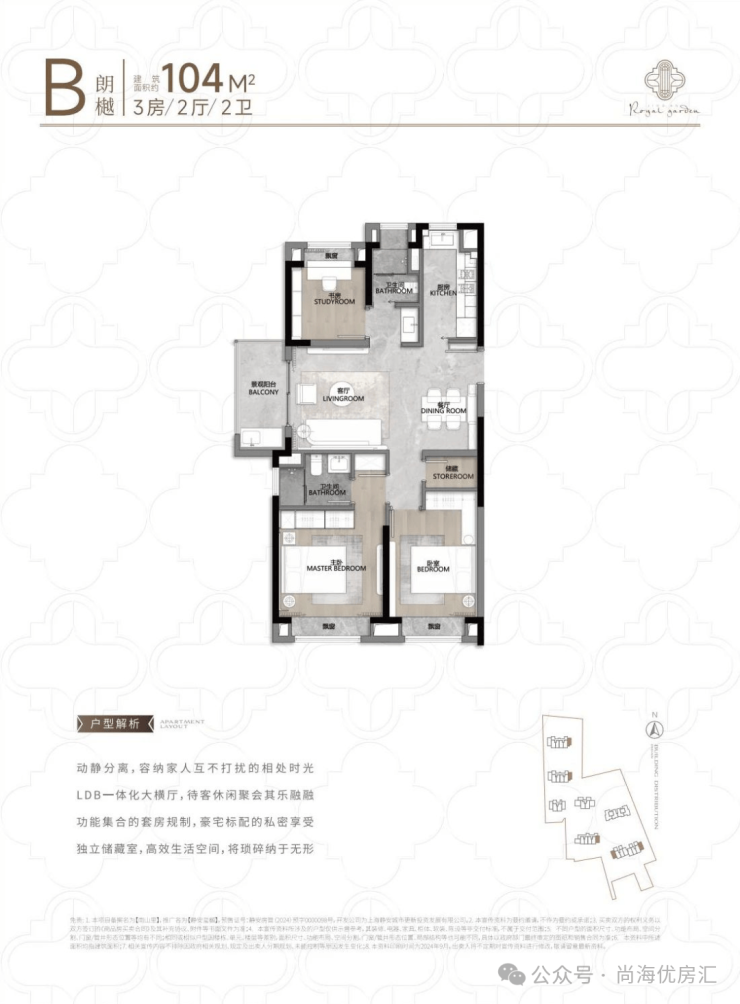建面约100-103㎡的三房B户型,全明空间,尺度舒适,功能完备。开阔的空间格局,每日与阳光清风作伴舒适惬意。三房设置,满足从小太阳家庭到三代同堂的全周期家庭需要。