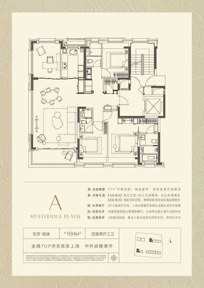 约184㎡公园头排景观房,四房两厅三卫格局,LDKB一体化设计!