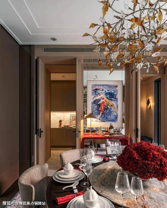 以约160㎡单层空间承载家庭生活的仪式感,约60㎡客餐厅贯通休闲阳台,空间通透、气度非凡。全套房设计,保证每位居者的私密与舒适,礼序有致、功能齐备。