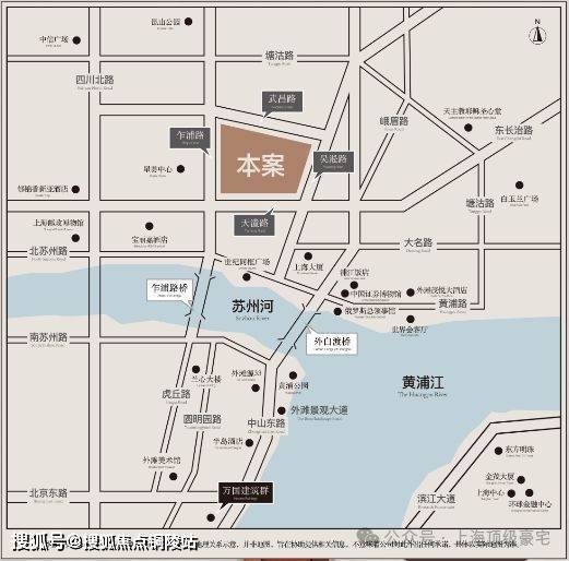 位于内环内北外滩核心,天潼路近乍浦路口,独占江(黄浦江)河(苏州河)交汇上佳钻石地段。