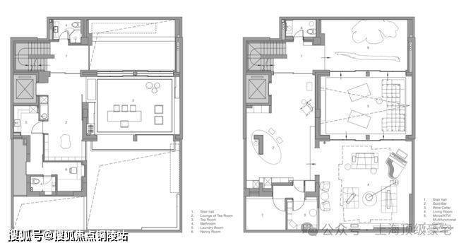 地下室层是娱乐和家庭聚会的主要空间,因此,我们将空间设计得更现代和随意。也正是在这里,我们突破了室内空间中跨文化对话的界限。