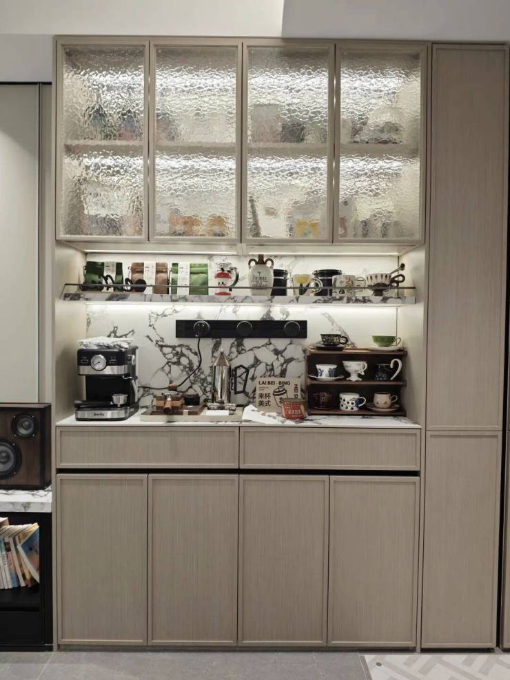 本次还增加了非常实用的零食柜和餐边柜,未来业主在这里可以作为自己的一个日咖夜酒区域。