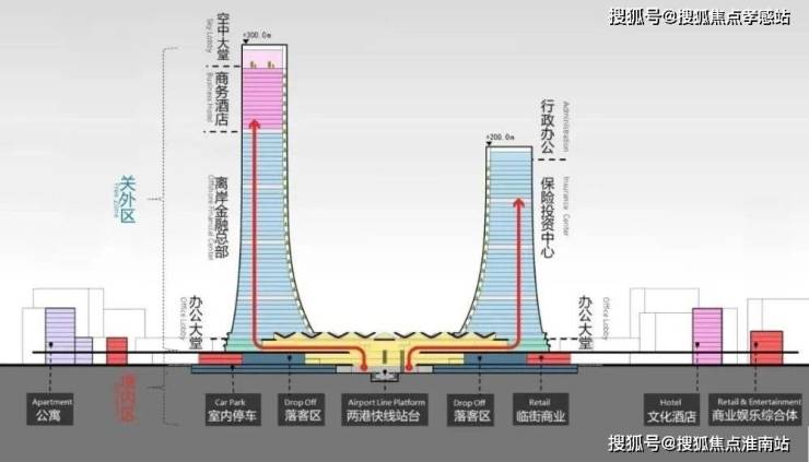 中央商务区不仅有300m临港三件套,还有全球首个实现境内关外概念的城市航站楼: