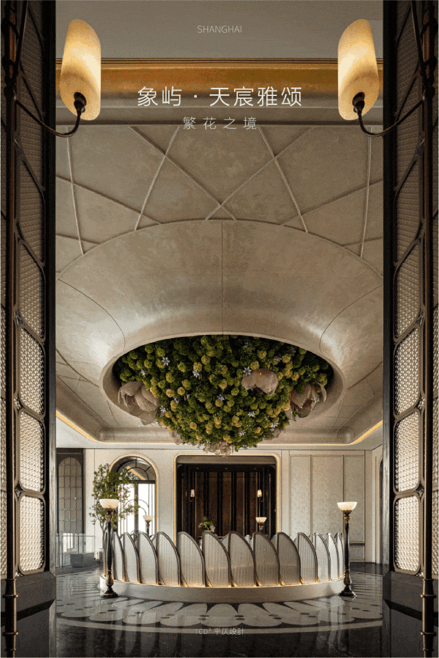 进门之后,恍若走进一幅立体绽放的画卷。地面采用了石材拼花,纹理如行云流水般舒展,在光影交错间勾勒出低调的奢华。