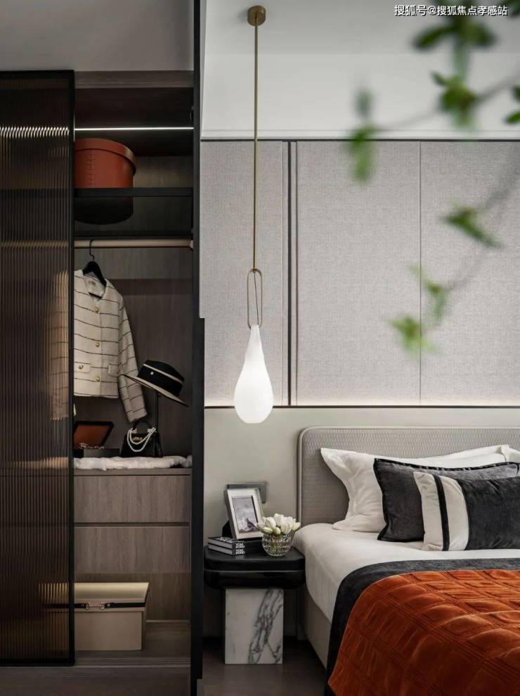 主卧床背景墙进行了软包处理,省去了业主未来二次装修的时间、精力跟成本,更好的给业主一个舒适且高颜值的家。