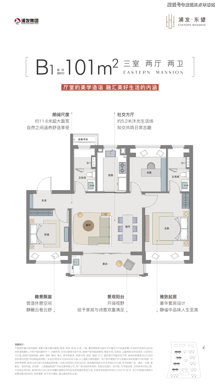 建面约101㎡B1户型尺度感惊人,约5.2米南向面宽的客餐厅以及阳台,为室内带来了非常出色的采光度。⚠🔥浦发上品售楼处电话:400-8787-740👈🔥