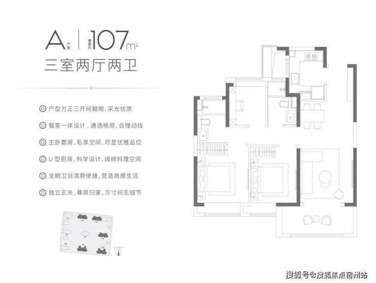 项目建面约107㎡户型集LDBK一体化、玄关入户、动静分区设计于一体,在功能性与舒适度上几乎都做到了极致!
