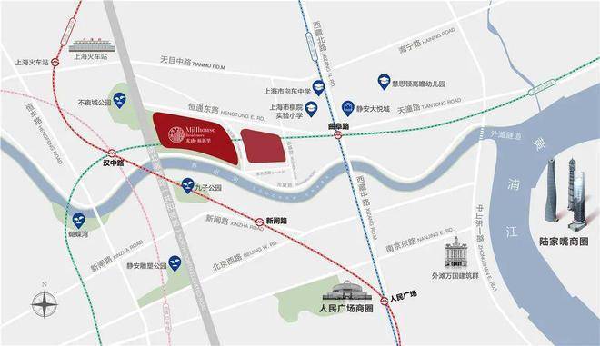 商业配套方面:在项目旁边的地块,就是龙盛的商业部分——福新汇,从-1层到4层包含全生活业态。另外,项目东侧华润苏河湾打造的中央公园中,地下部分全部为城市商业,这些都是在建中步行可达的。当然成熟的商业也围绕其中,项目约500米左右就是静安大悦城、1站人民广场、3站黄陂南路(步行约60米新天地)、3站静安寺,轨交10分钟内便有上海最大、最繁华的商圈。