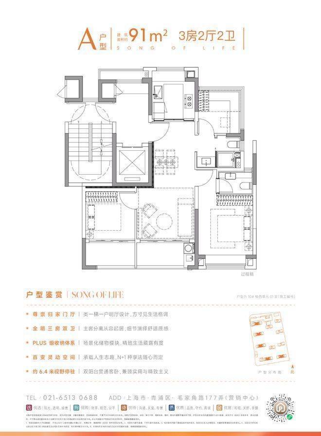 建面约91㎡三房两卫是“极致利用”保利虹桥和颂售楼处电话☎:400-8787-740✅✅