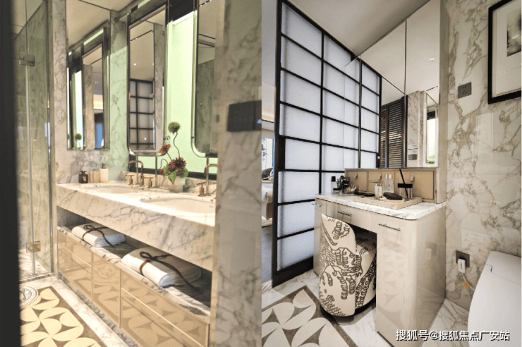 卫生间采用杜拉维特台盆、汉斯格雅龙头,更有定制科勒龙头,堪称全明星阵容的感官盛宴。