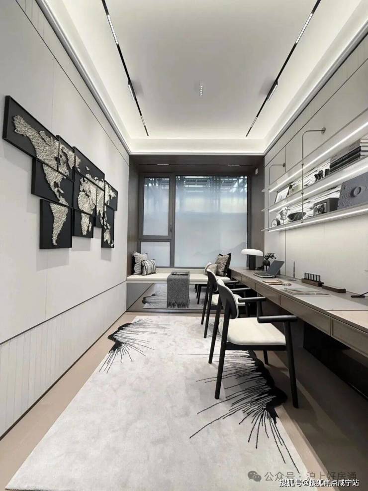 第三景-绿波廊下:这里是一个半开放式的吧台空间,开窗与中庭大树遥相对应,树影青葱,清风摇曳,享受悠闲风雅。保利建发印象青城预约热线☎:400-8080-420✅✅如有问题欢迎来电咨询,来电即可享受买房优惠!