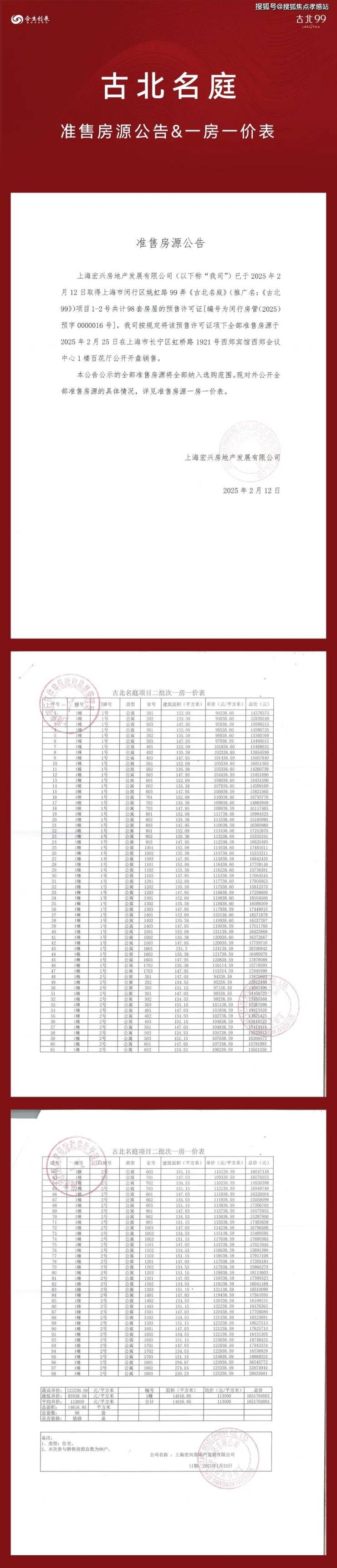 据悉,【古北99官方热线:400-1010-064☎☎】加推2号楼,合计99套房源:包括建面约135-154㎡3-4房,建面建面约230-299㎡复式房。均价约为11.65万元/㎡,即将入市,前期少量房源可直接认购!