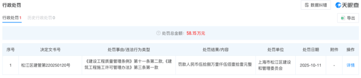 值得一提的是,2025年10月中旬,西派云间项目开发商上海京涧房地产有限公司,因“施工图设计文件未经审核批准、未取得施工许可证擅自开工”被罚款58.15万元。这也从侧面反映出项目急于开工入市的迫切心态,最终却事与愿违。