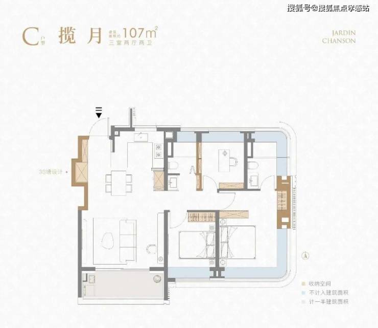 建面约107㎡的户型则刷新了我们对百平三房的认知